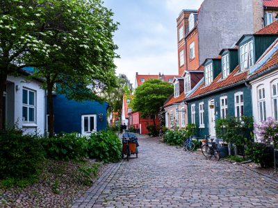 Andelsboligerne ligger ud til grønne områder og skov, og tæt ved cykelsti, som fører direkte ind til byen.